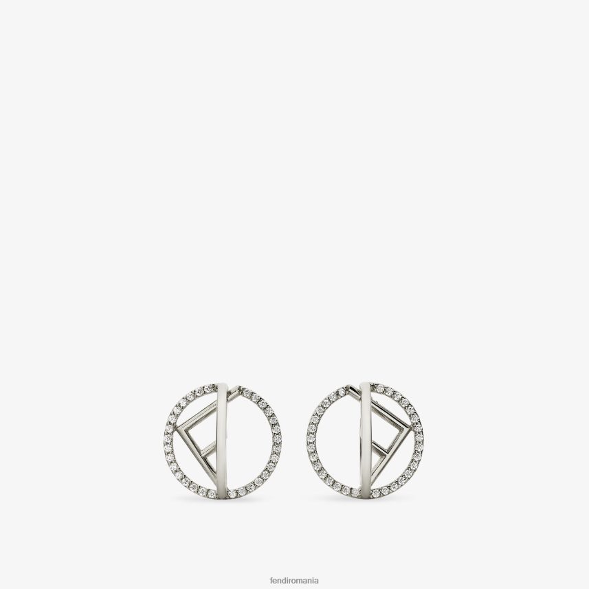 cercei cu motiv f is fendi. din metal cu finisaj paladiu. impodobita cu cristale albe.