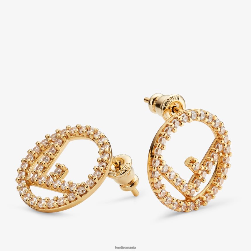 cercei cerc cu motiv f is fendi. din metal cu finisaj auriu. impodobita cu cristale albe.