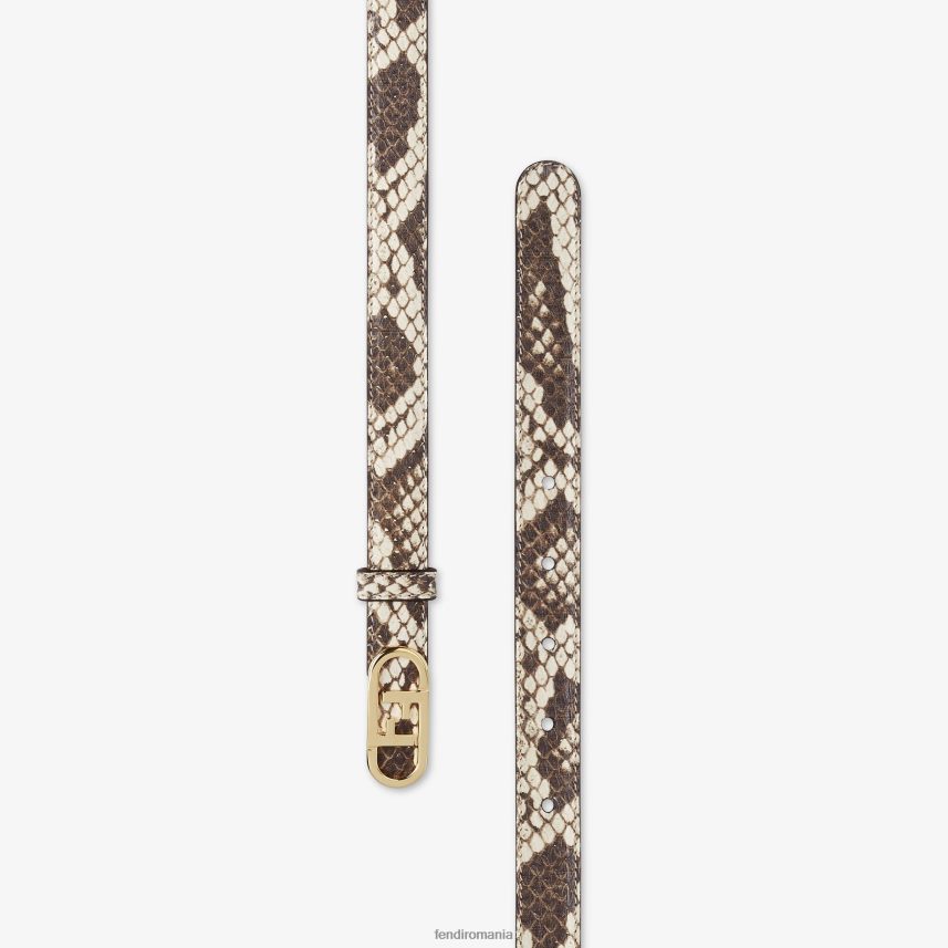 centură îngustă cu buclă și cataramă fendi o'lock. din piele maro elaphe cu imprimeu piton. metal finisaj auriu.