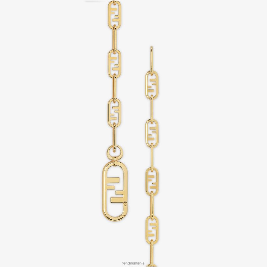 curea cu lanț cu motiv fendi o'lock și închidere cu clemă. realizate din metal cu finisaj auriu.