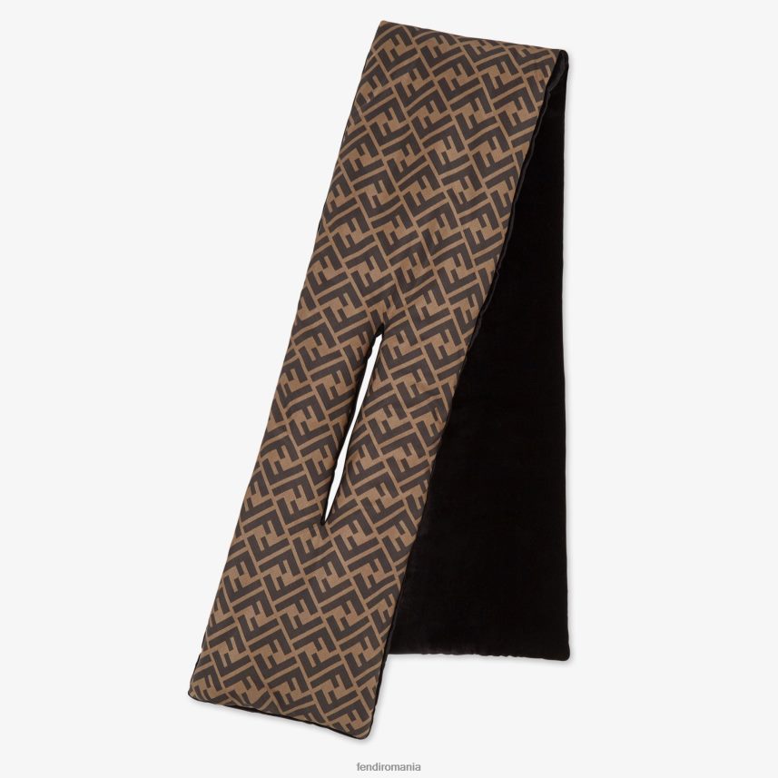 Guler reversibil din nailon cu motiv macro ff in nuante de negru si maro. interior cald din catifea neagră.