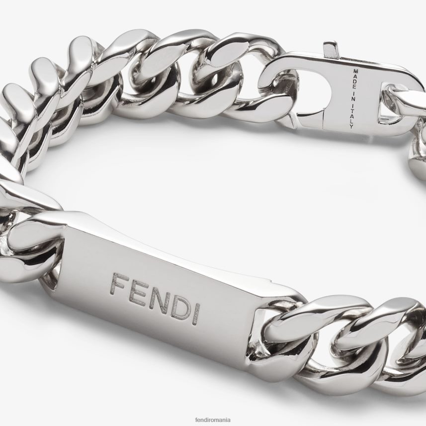 brățară zale închisă cu clemă. din metal fără nichel cu finisaj paladiu. decorat cu o placă și litere fendi.