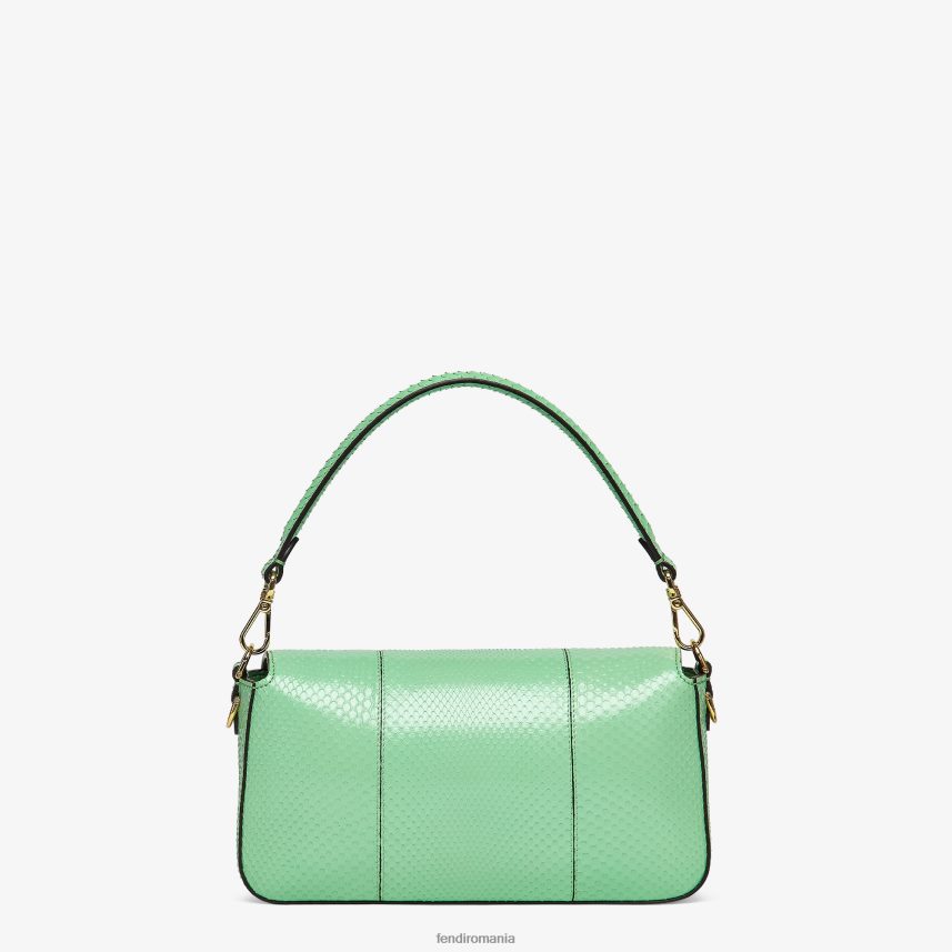 geantă baghetă iconică medie, din piele de piton verde rafinată, împodobită cu închidere ff.