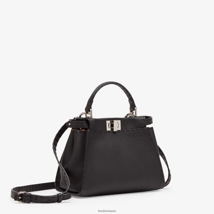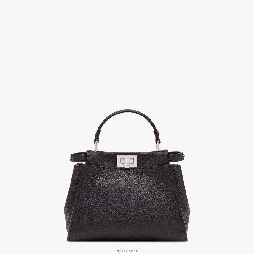 geantă emblematică peekaboo, realizată din piele cuoio romano neagră, finisată cu cusături de mână și împodobită cu încuietoare clasică pe ambele părți.